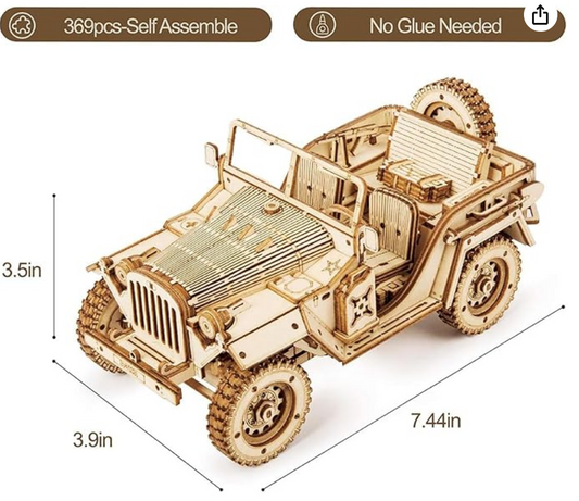 3D Wooden Puzzle - Army Jeep Wrangler Model Kit (1:18 Scale)